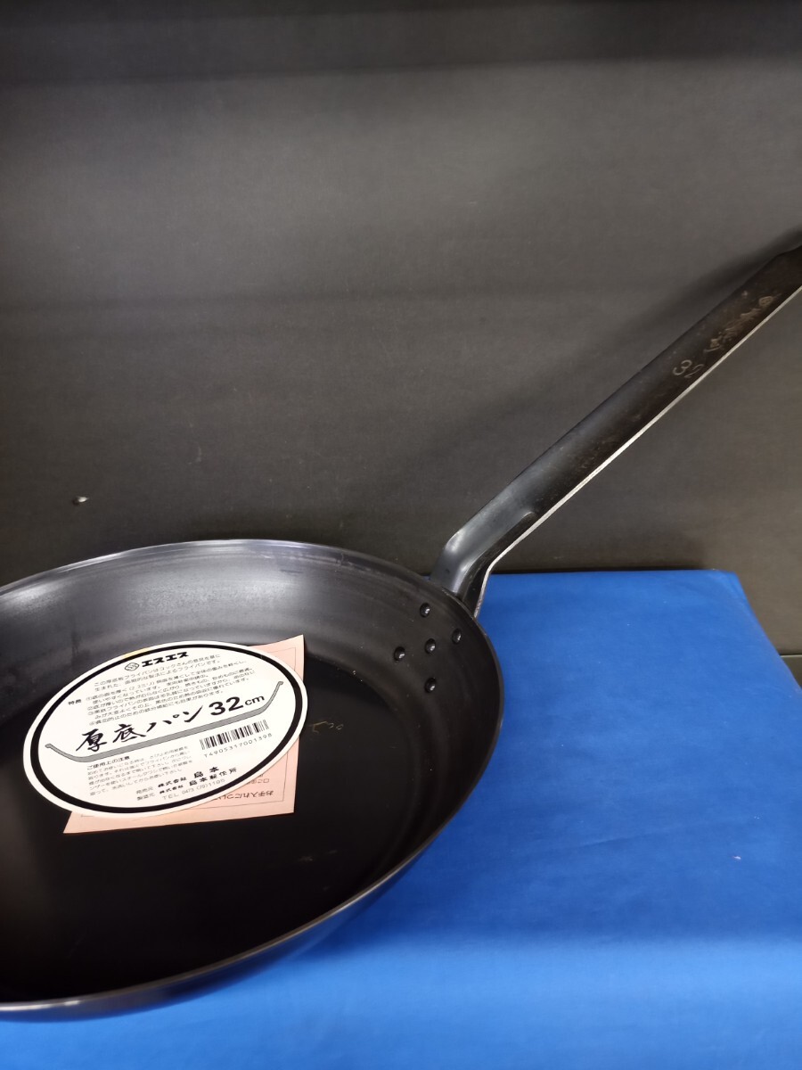 - 昭和レトロ■エスエス 厚底パン 32cm 黒鉄フライパン 島本製作所 日本製