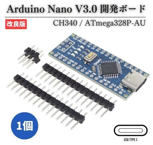 - USB TYPE-C Arduino Nano V3.0 CH340 ATmega 328P Atmel mega 328 Nano V3.0 互換 5V 16M マイクロコントローラーボード 1個 E541 送料無料
