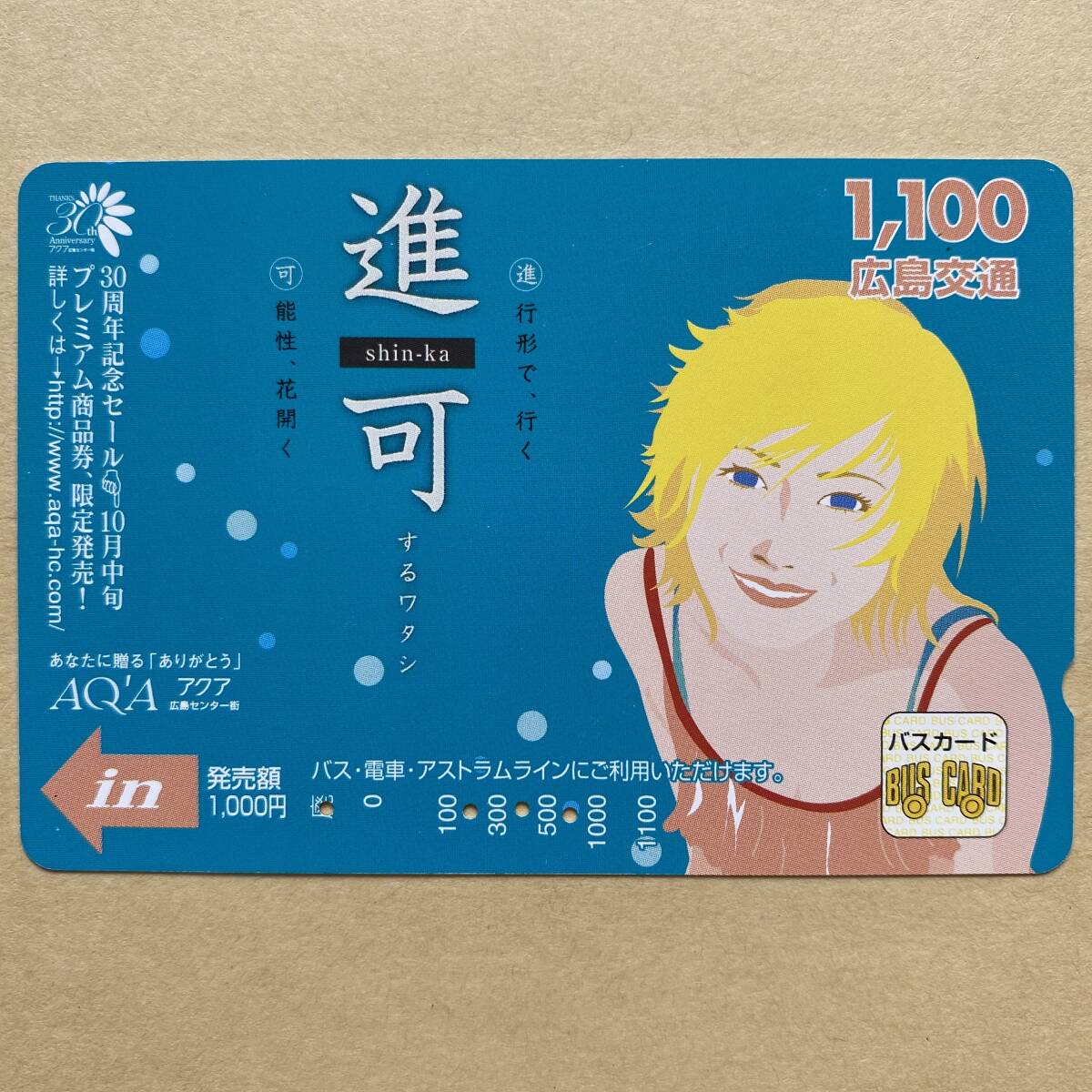 - 【使用済】 バスカード 広島交通 アクア広島センター街 進可するワタシ イラスト