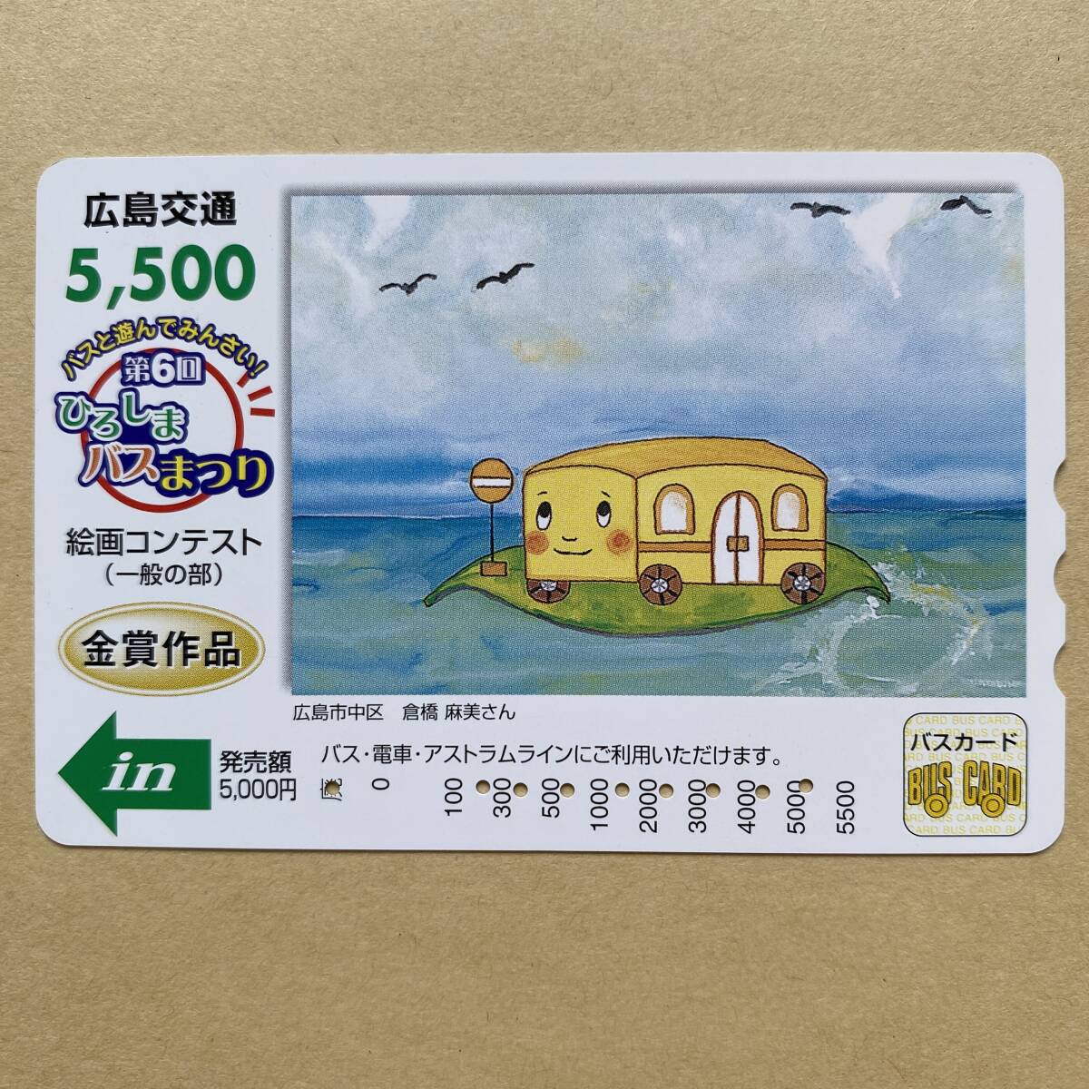 - 【使用済】 バスカード 広島交通 第6回ひろしまバスまつり 絵画コンテスト (一般の部) 金賞作品