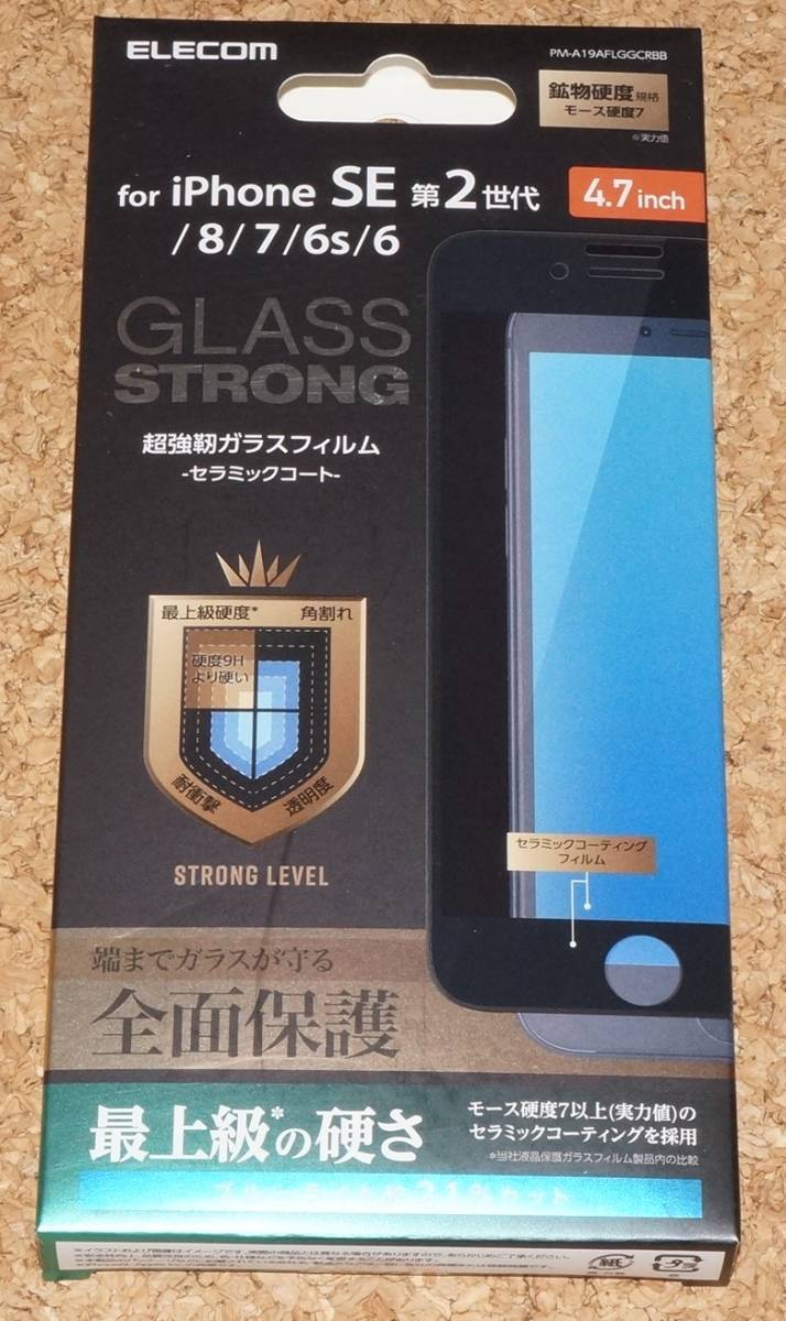 > ★新品★ELECOM iPhone SE2/SE3/8/7/6s/6 液晶保護ガラスフィルム 全面保護 セラミックコート ブルーライトカット ブラック