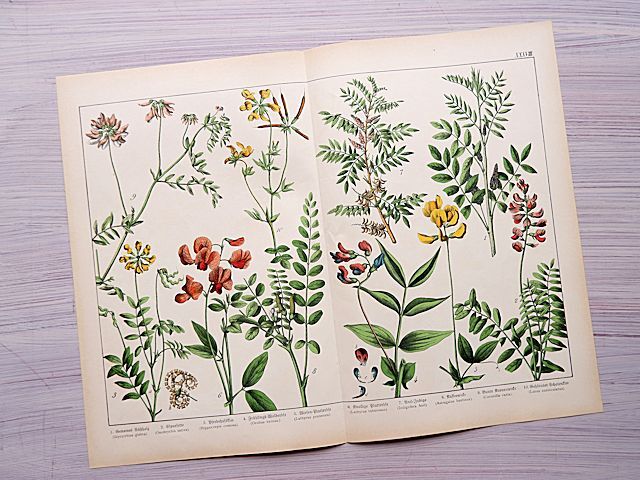 - ★ドイツ/アンティークボタニカルアート/植物画/リトグラフ/1880-90年代★カンゾウ/エンドウ/レンゲ/甘草★