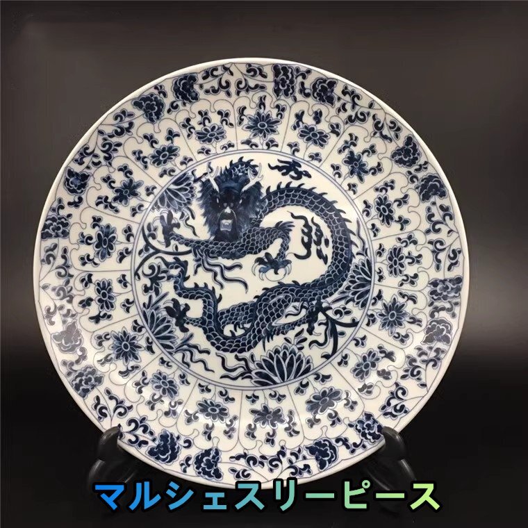 - 景徳鎮 お皿 観賞皿 青花 龍柄 磁器 陶磁器 観賞 置物 中国美術品 工芸品 収蔵 コレクションY38381