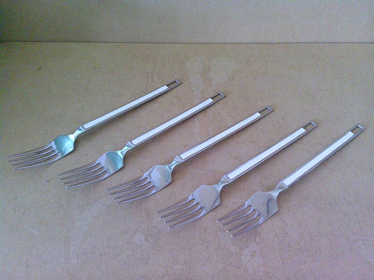 - ■ く-108 フォーク 5本セット 未使用保管品 ステンレススチール製 ディナーフォーク ※約寸:最大)単品:長さ18cm 幅2.2cm 重さ20g