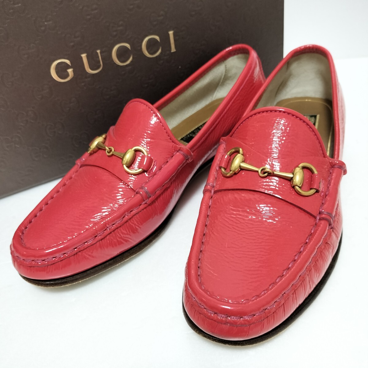- Gucci グッチ ローファー エナメル 赤 ホースビット