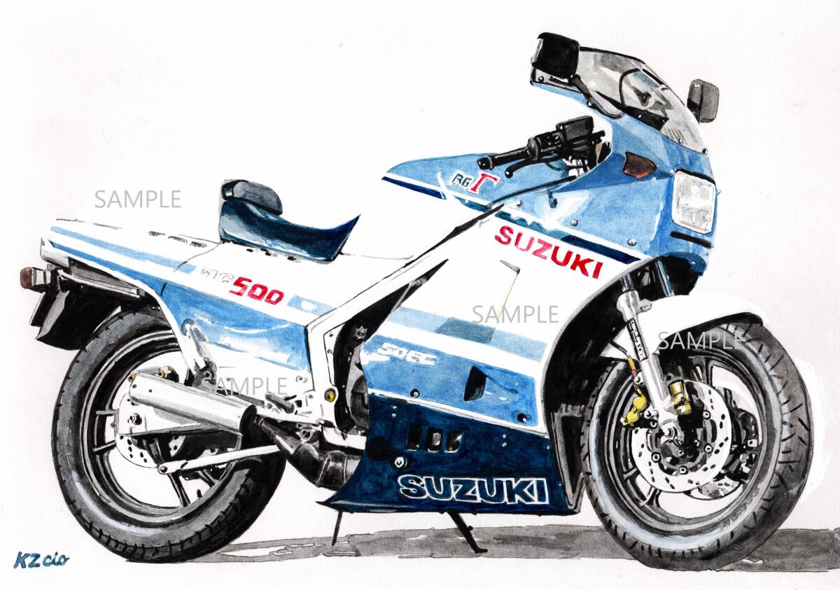 - A4プリントです スズキ RG500ガンマ 水彩画 バイクイラスト