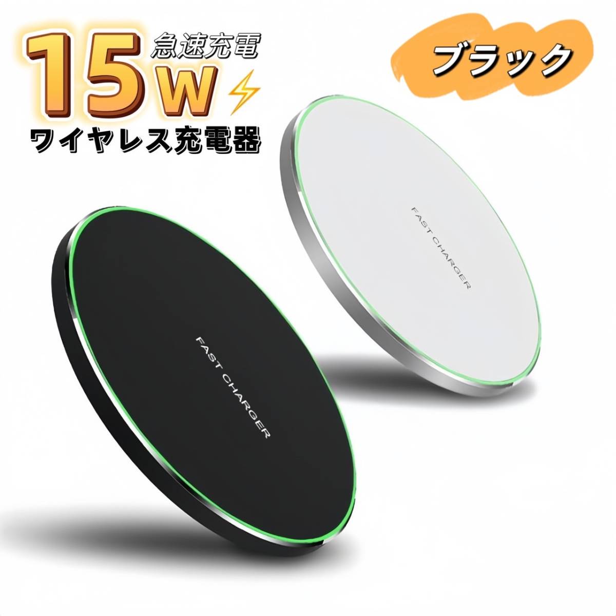 - ワイヤレス充電 iPhone ブラック ワイヤレス充電器 iPhone 急速 置くだけ充電 スマホワイヤレス充電
