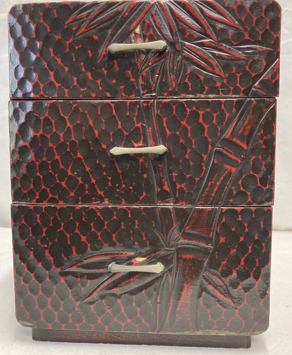 - マニア用:アンティーク:レトロ調 鎌倉彫調?:小箱三段小引き出し小物入れ 1250