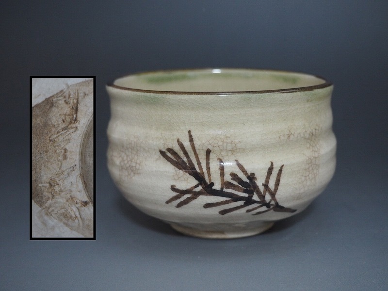 - A2695 陶印有り 松葉文 野点茶碗 ☆ 直10.3㎝ 茶道具 抹茶器 抹茶道具 茶懐石 茶事 茶碗 小茶碗 抹茶碗 陶器 作家物 在銘 陶印 良品 無傷