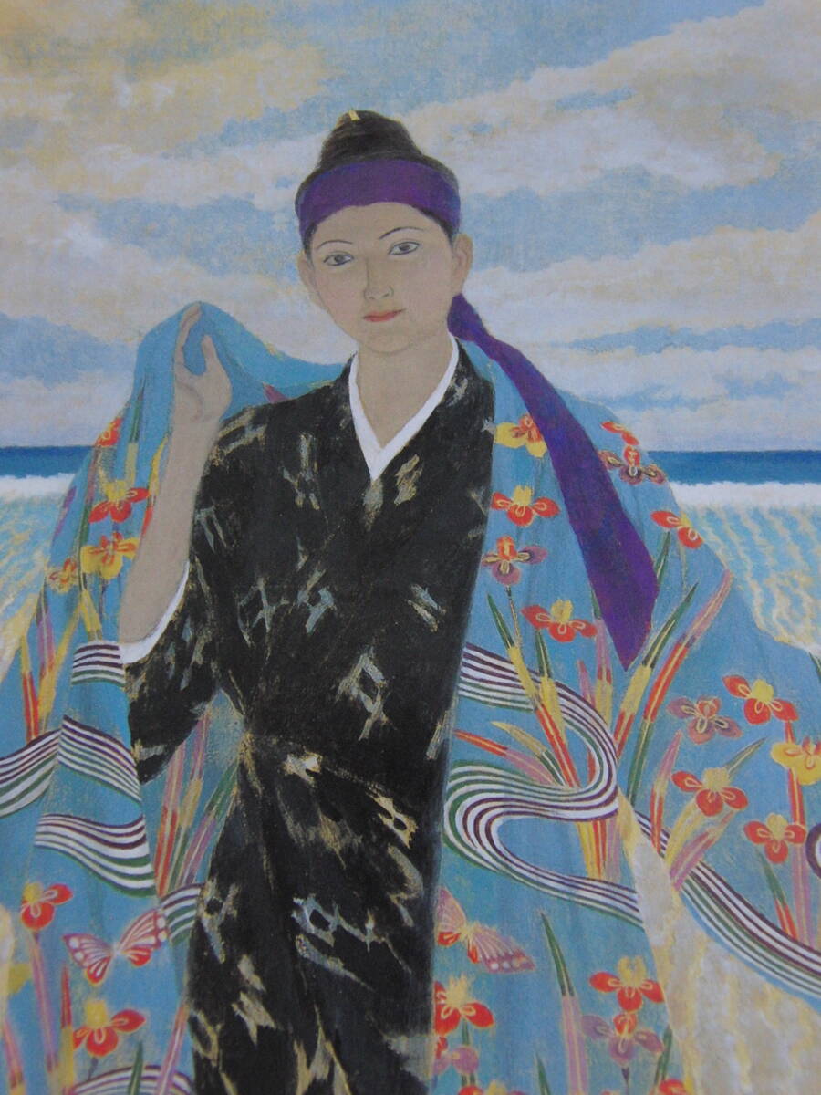 - 鎌倉秀雄、【琉装の佳奈】、希少な額装用画集より、厳選、新品額装、マット額装付、状態良好、日本人画家