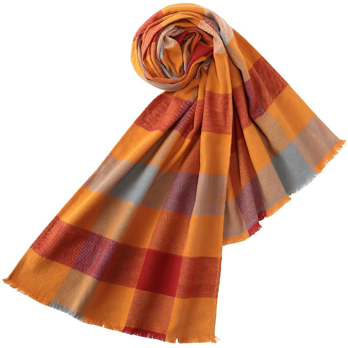 - 綿100% お肌に優しい 今治タオル ブロックチェック柄 マフラー やわらかく あったかい 188cm×38cm 大判 オレンジ 日本製