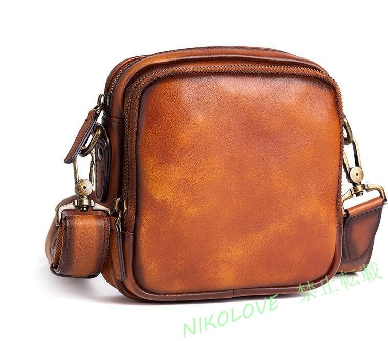 - 新品強力推薦 本革 ショルダーバッグ 斜め掛け鞄 メッセンジャーバッグ ヌメ革 本革 牛革 レザー ブラウンコーヒー LD922