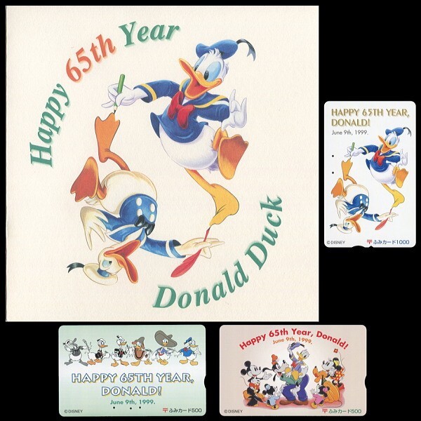 - ★使用済み★ ディズニー ドナルド ドナルド65周年記念日本郵便ふみカードセット 1999年 ファイルとカード3枚