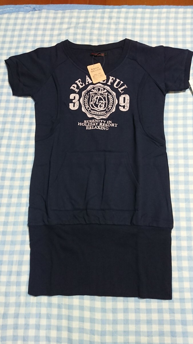 - 〇420未使用・保管品☆授乳服☆ミニ起毛 半袖チュニックトレーナー 紺L②