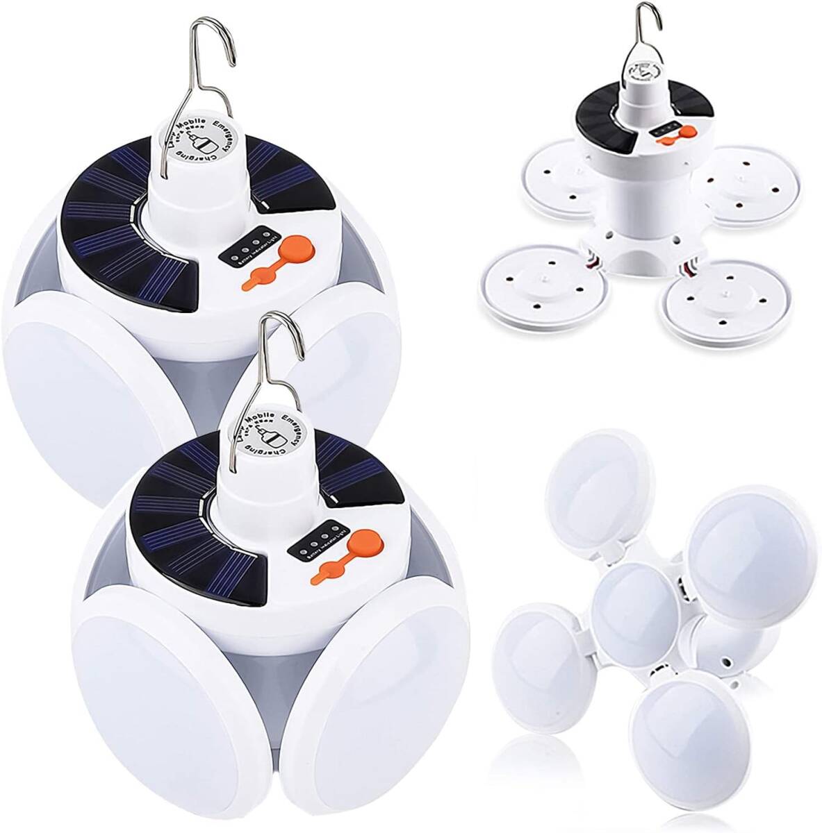 - 2個セット 360度 4方向全方位 ソーラーライト ガーデン LED 2WAY 折り畳み 明るさ調節 ストロボ 照明 アウトドア テラス 庭ライト