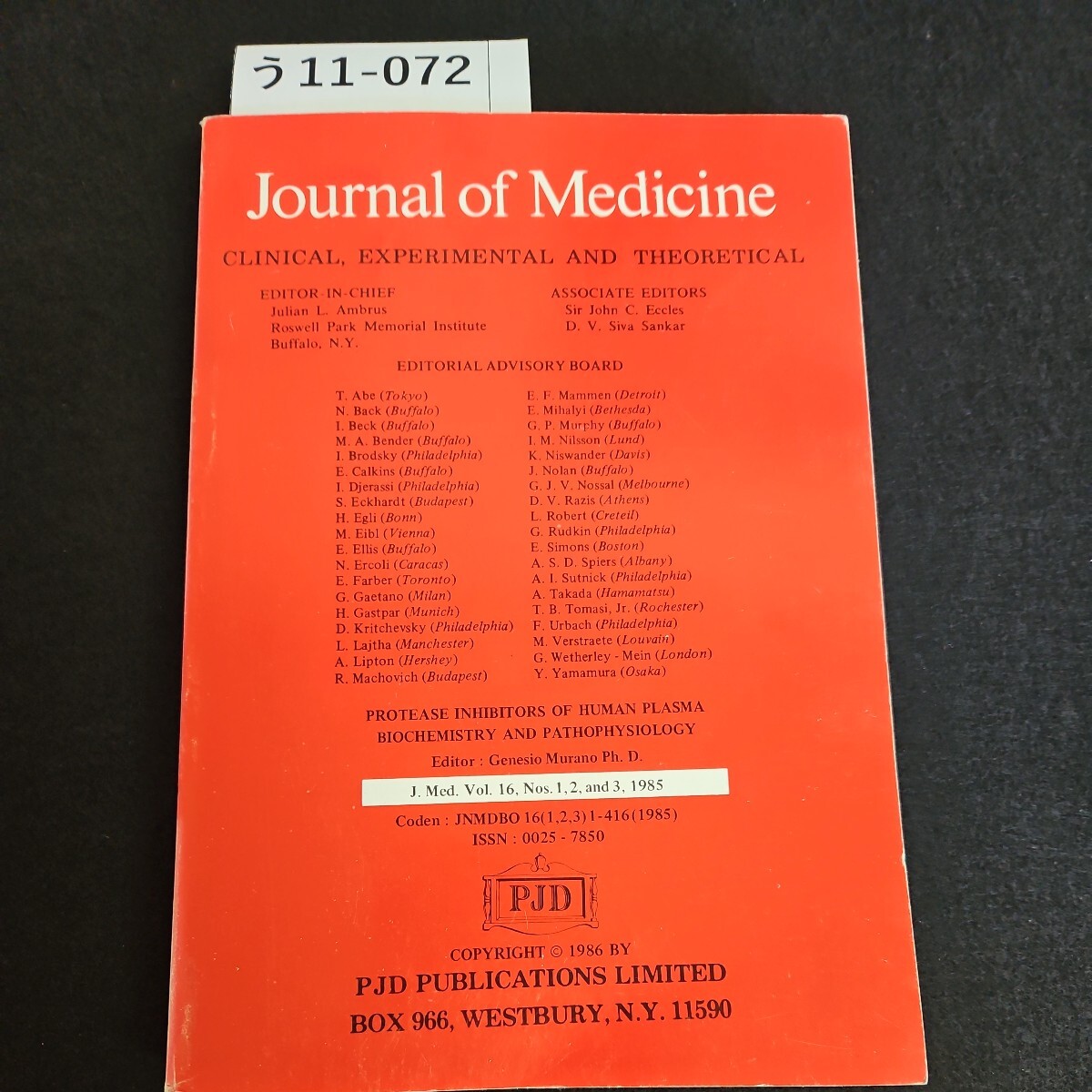 - う11-072 JOURNAL OF MEDICINE VOLUME 16, NOS. 1, 2 and 3, 1985