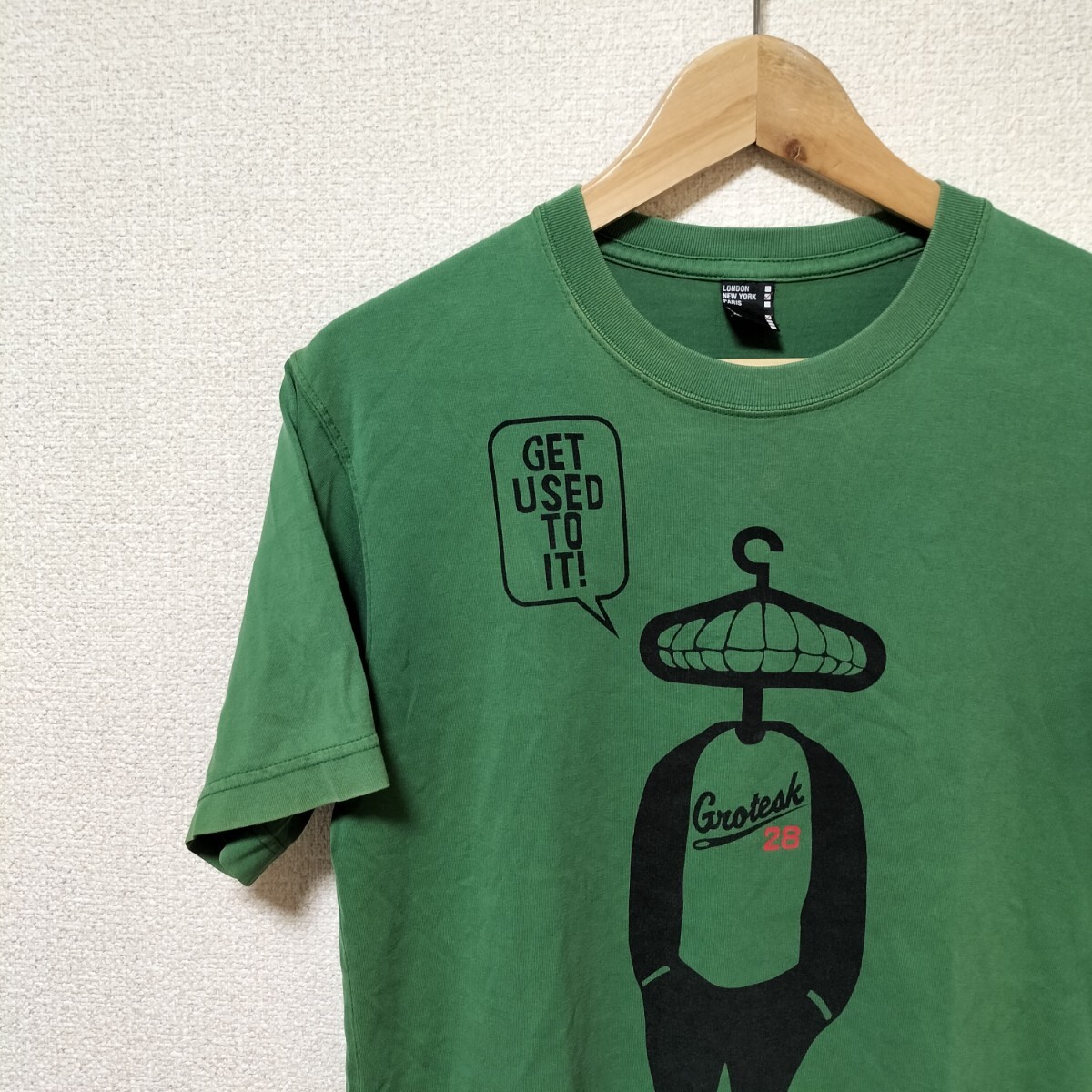 > ☆00s 旧タグ OLD UNIQLO 半袖 Tシャツ 染み込みプリント メンズ サイズS カットソー プルオーバー グリーン オールド ユニクロ 古着 USED
