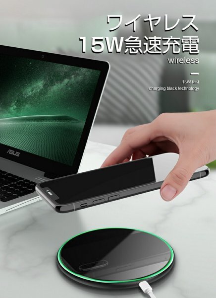 - ワイヤレス充電器 最大15W出力 Qi認証 iPhone/AirPods Pro/Apple watch/Galaxy/Xperia 対応 充電スタンド 置くだけ充電