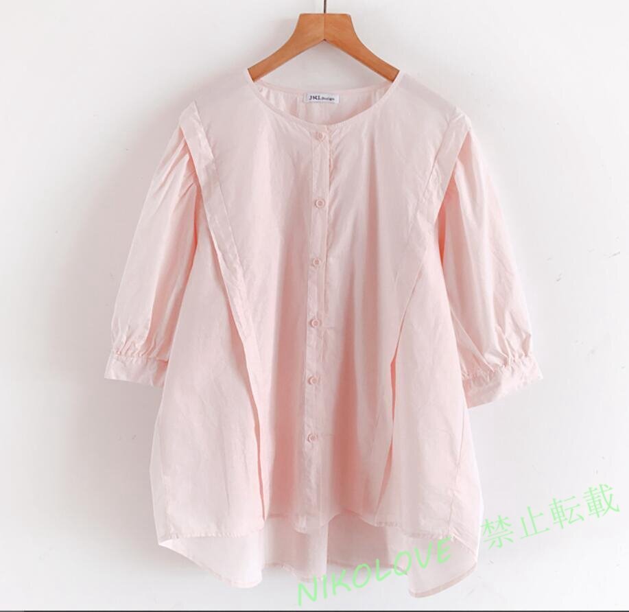 > 新品春夏 リネン ブラウス レディース 七分袖 シャツブラウス オフィス コットン シャツ 綿麻混 トップス 通勤 着痩せ ピンク LH908