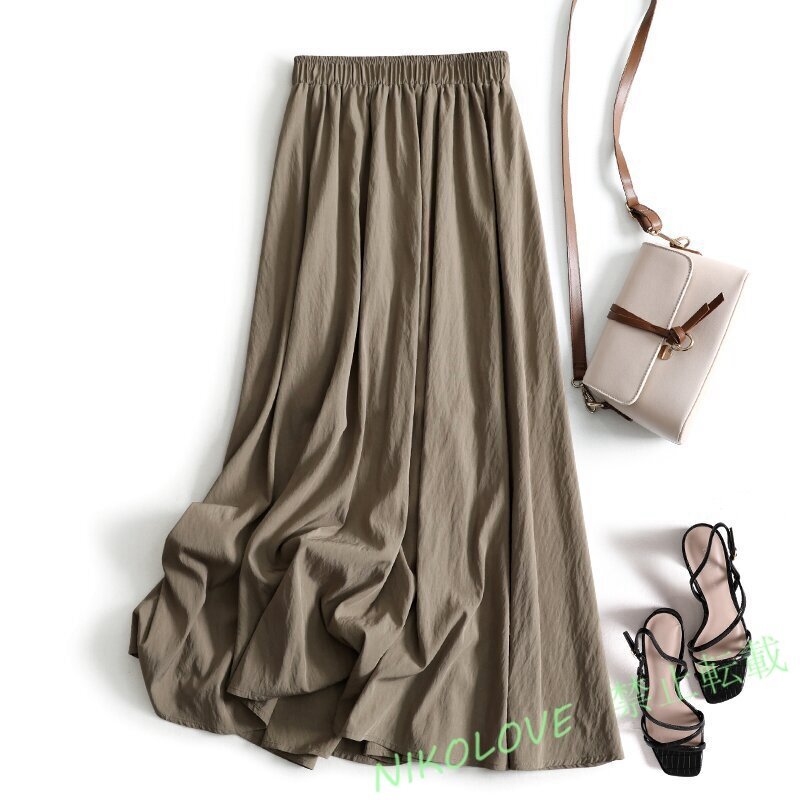 - 新品春夏 フレアロングスカート レディース ボトムス マキシ丈 無地 シンプル カジュアル きれいめ ロング丈スカート LH542