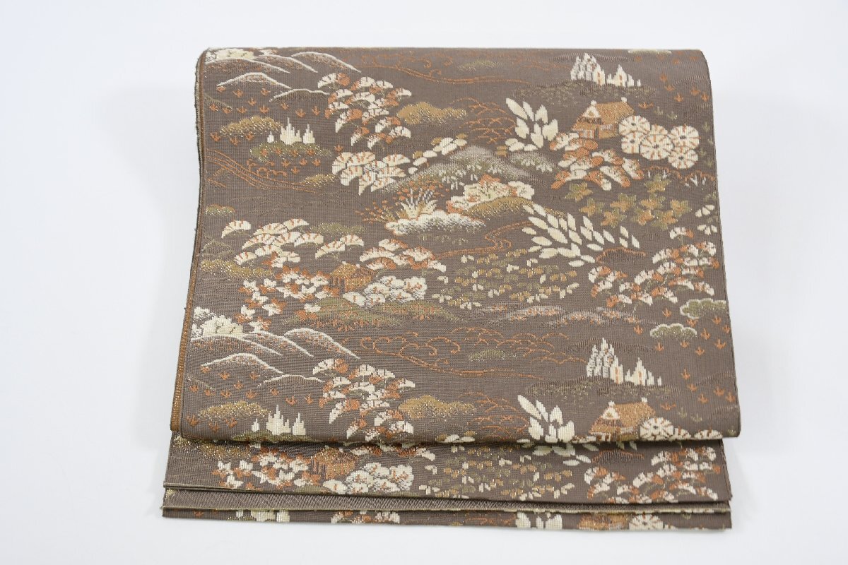 - 袋名古屋帯 六通柄 風景 花 帯丈358cm ★着物屋 ne-10948 桜庭呉服店