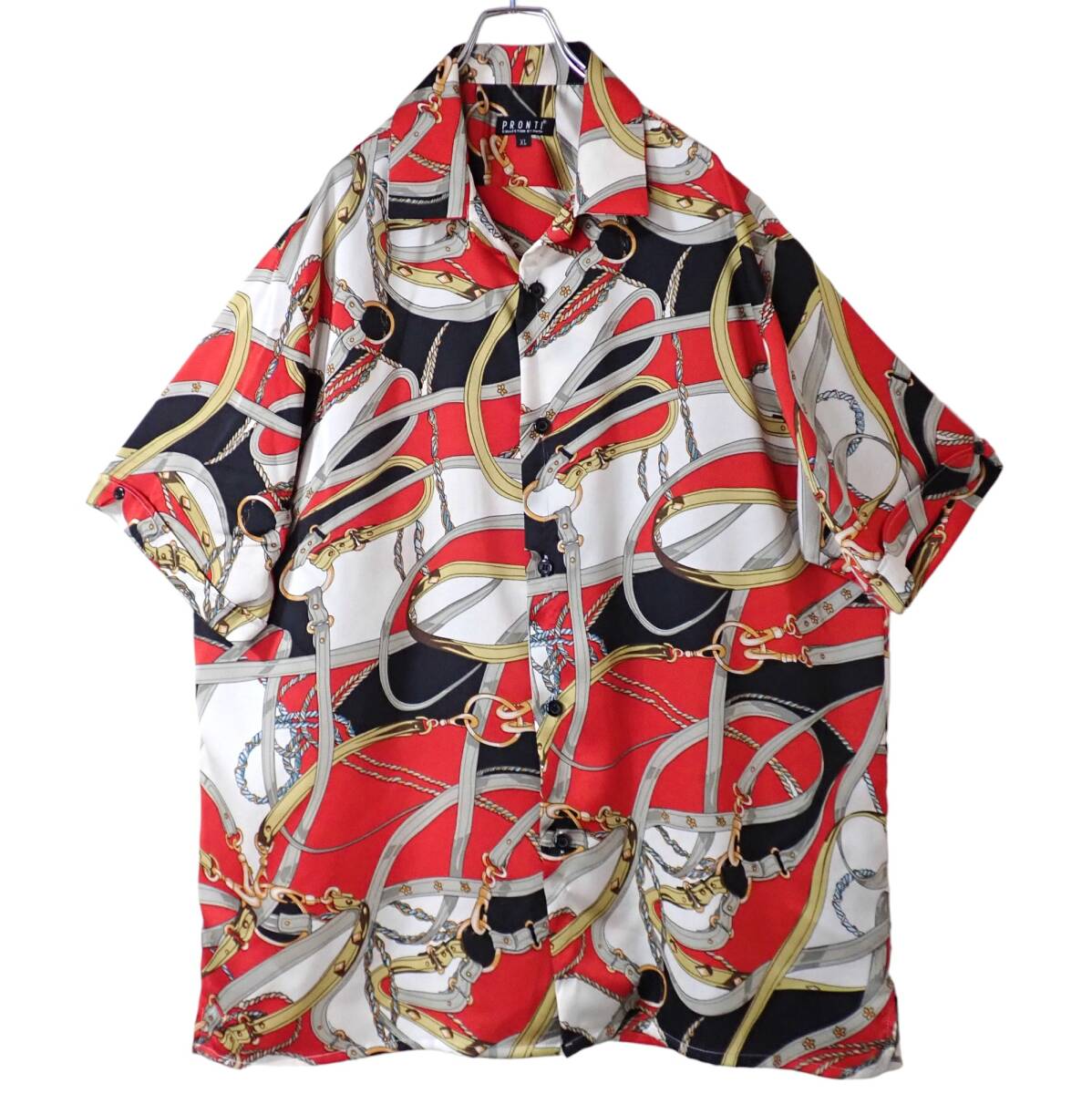 - 5851/希少PRONTI COLLECTION BY PHITA スカーフ柄 半袖オープンシャツ XL ビンテージ●洗濯プレス済●ネコポス可● 古着