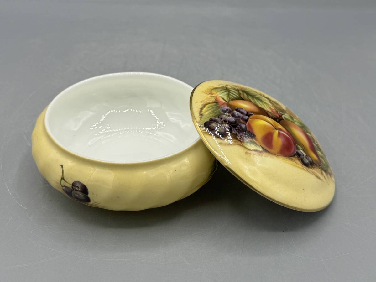- エインズレイ オーチャードゴールド フルーツ 柄 蓋付 小物入れ 果実 桃 葡萄 * (6)