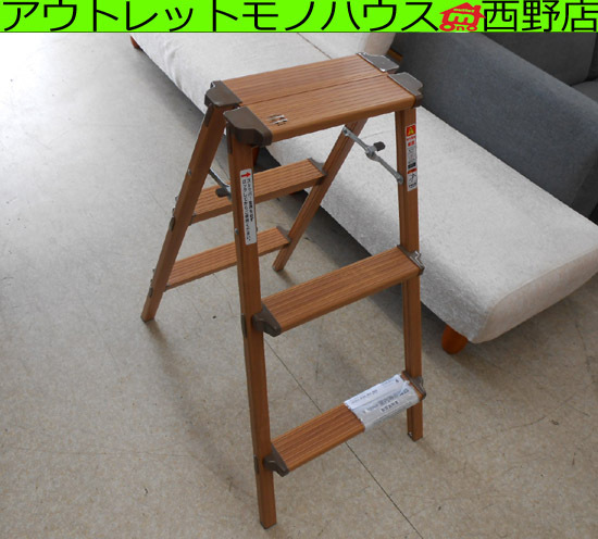 美品 天馬 ウッディーステップ3 3段 木目調 アルミ 脚立 インテリア 踏み台 札幌 西野店