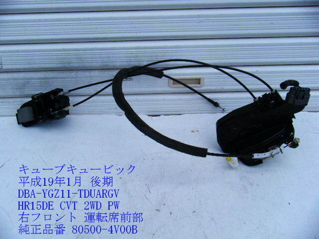 > ◆YGZ11 日産 キューブ キュービック 後期 右フロント ドアロックアクチュエーター ソレノイド 運転席前 80500-4V00B [13245]