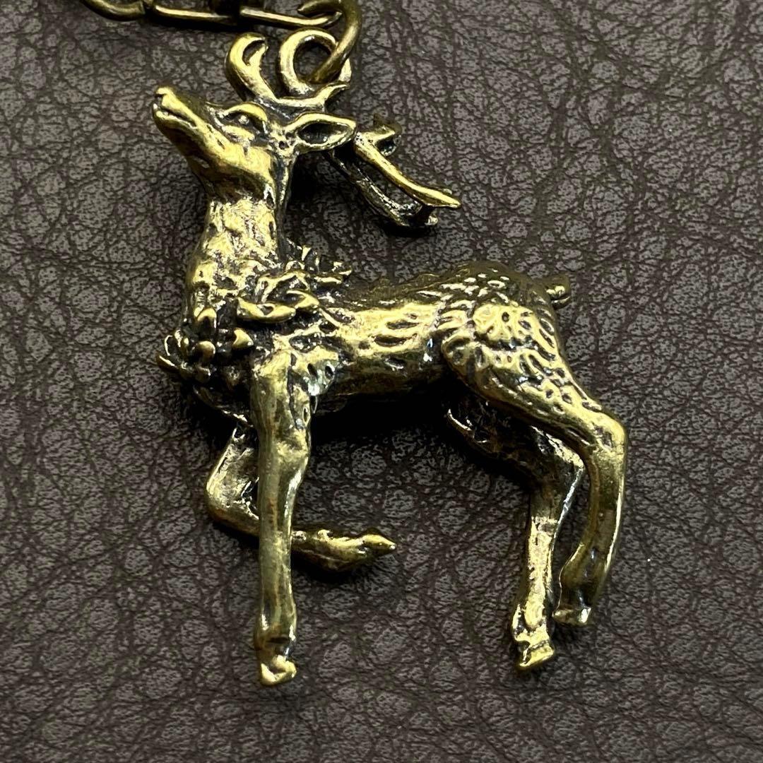 - 真鍮 キーホルダー キーリング ヴィンテージ ビンテージ 金色 アンティーク レトロ 真鍮製 ペンダントトップ 置物 チャーム 鹿 シカ 83