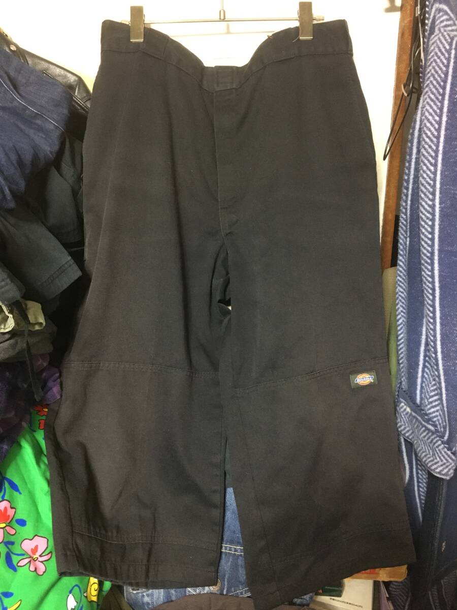 > 2406ディッキーズDickiesダブルWニー ワークWORKサイドポケット付ショートパンツ36×32ショーツBLACKブラック黒ハーフHALFビッグBIGサイズ