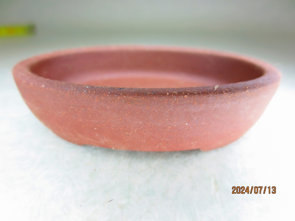 - [緑の市場] 盆栽鉢 文山 朱泥楕円鉢 7.5㎝ (J006)送料無料/有料(ゆうパック)選択可※無料はメール便ポスト投函