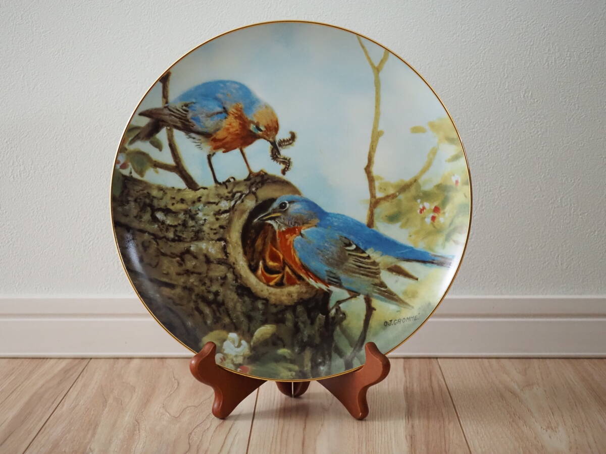 > 【COLLECTOR PLATE】BLUEBIRD FAMILY LIMITED EDITION 青い鳥 絵皿 飾り皿 スタンド付