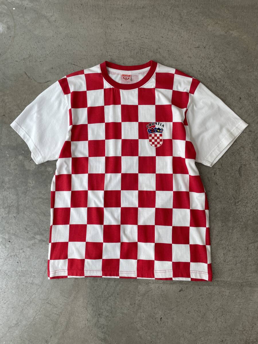 > 希少!美品!USA購入!80s 90s 00s CROATIA ゲームシャツ 市松柄 チェッカーフラッグ サッカー Tee プリントT 大きいサイズ(L)