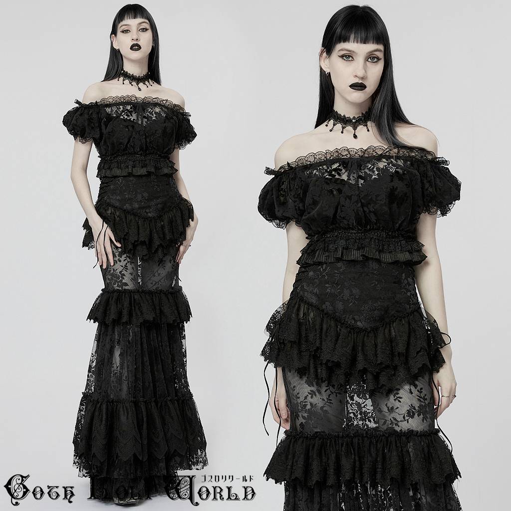 > sale WT-775TDF-BK-M-L アラベスク柄シースルーフリルシアーショート カットソー 黒色 ゴスロリワールド ゴシック パンク ロック V系