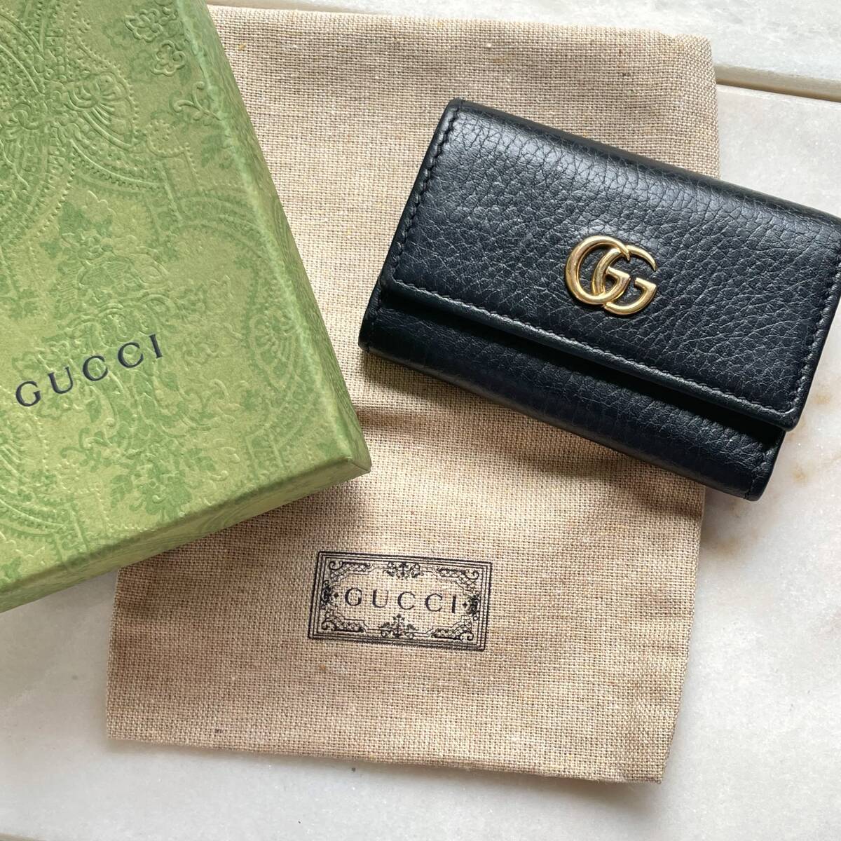 - GUCCI グッチ GGマーモント レザー 6連キーケース ブラック ×ゴールド