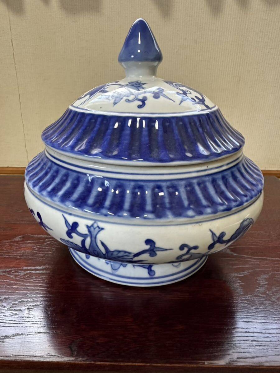 - 初出し品 中国 蓋付き器 染付 ★広島発送★(岡山発送品同梱不可)