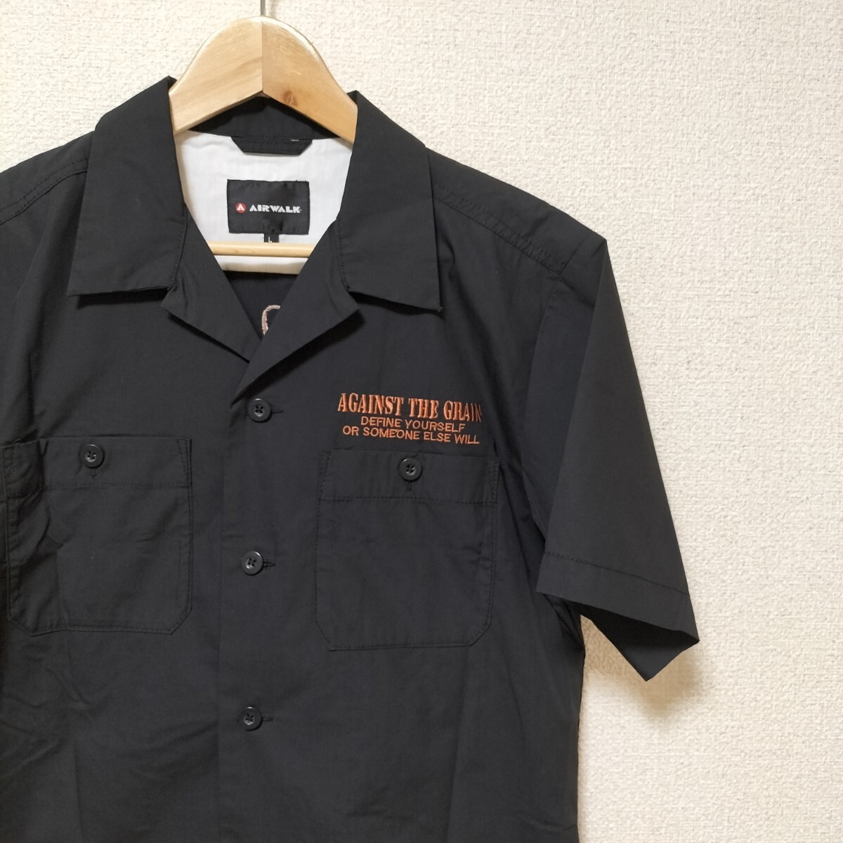 > 美品☆90s AIRWALK 半袖 ボーリングシャツ 刺繍デザイン 胸ポケット 黒 メンズ サイズL オールド エアウォーク Y2K スケーター 古着 USED