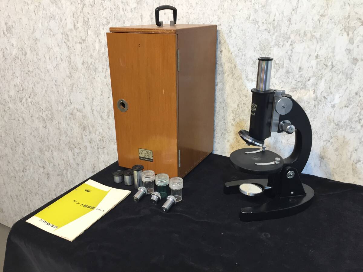 > 『 内田洋行 顕微鏡』 ケントズーム KENT KD-6 木箱付き 鍵なし 実験用 研究用 アンティーク レトロ ディスプレイ ★古時家★