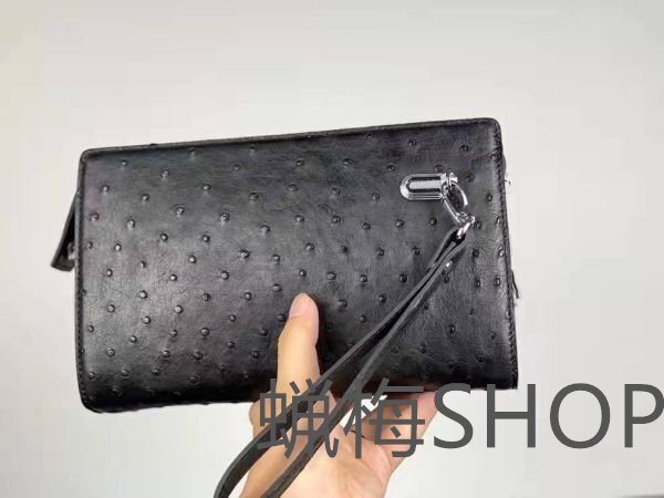 - 駝鳥革 本物保証 ラウンドファスナー ダチョウ メンズバッグ 新品 ブラック ダイヤルロック セカンドバッグ 防犯バッグ メンズ 財布