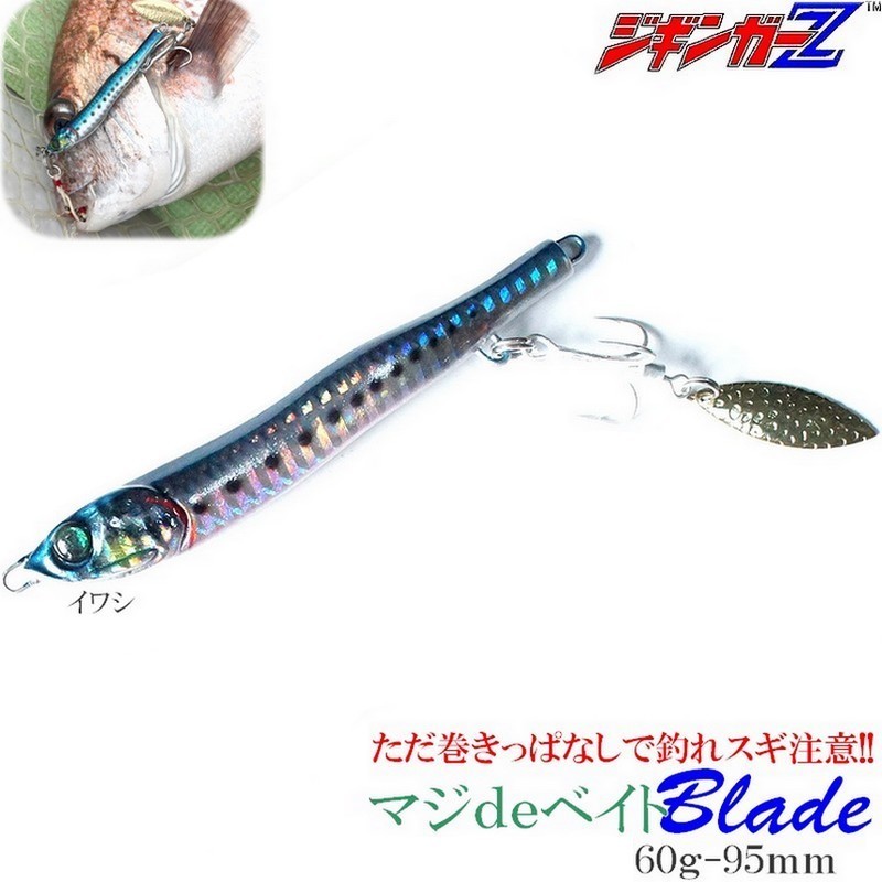 - メタルジグ 60g-95mm マジdeベイト BLADE【イワシ】 超リアル3Dボディ スピンテールジグ ジギンガ―Z タダ巻きOK 疑似餌 ルアー 釣り具