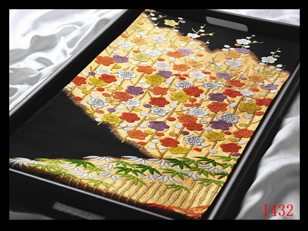 - I432厳選西陣 唐織 梅竹古典紋 黒色地 華やぎの品格 六通正絹純金糸高級美術袋帯 ◇検簪着物名古屋帯帯締め