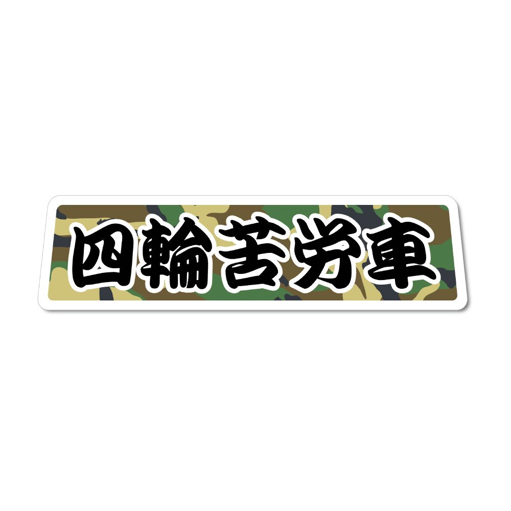 - (反射) 面白ステッカー 四輪苦労車 迷彩グリーンベタ×筆文字 11cm AWD 四輪駆動