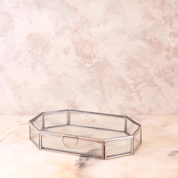 > ガラスジュエリーボックス 小物入れ ジュエリー アクセサリーケース シルバー ガラス製 おしゃれ かわいい 雑貨 小物 インテリア