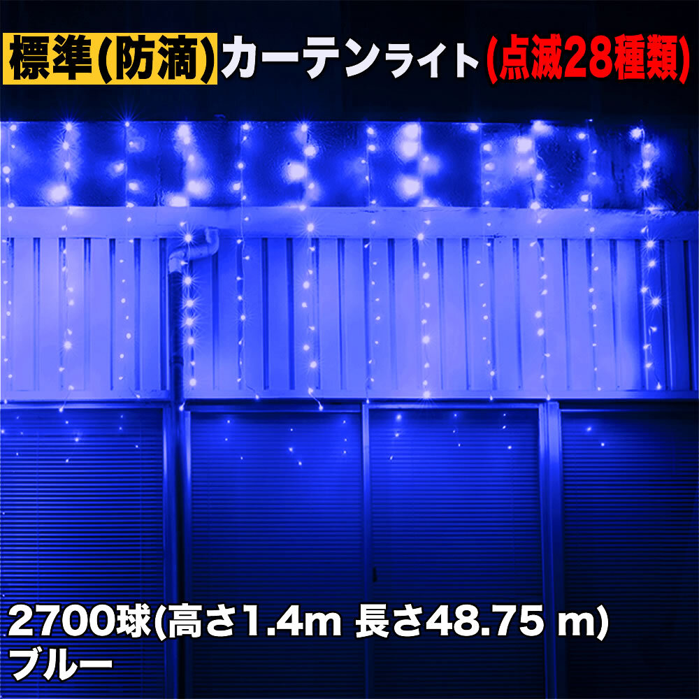 - クリスマス イルミネーション 防滴 カーテン ライト 電飾 LED 高さ1.4m 長さ48.75m 2700球 ブルー 青 28種類点滅 Bコントローラセット