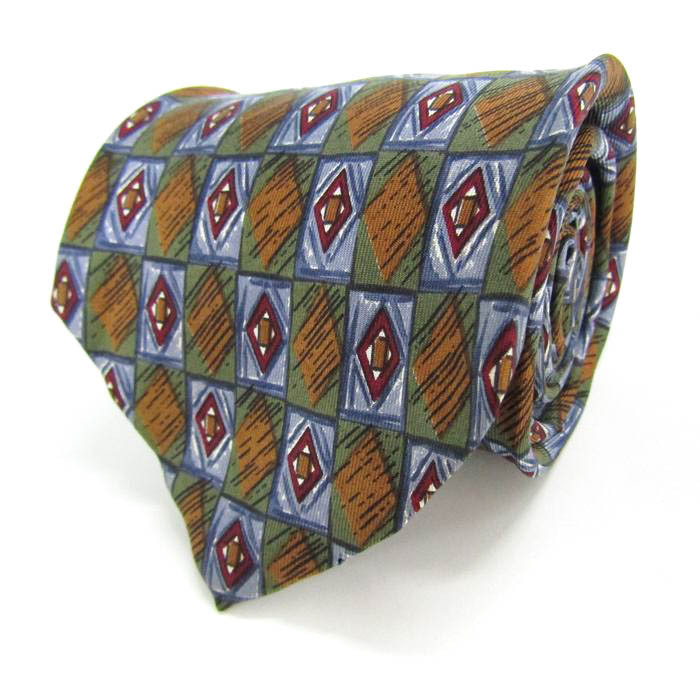 - ピエールバルマン ブランド ネクタイ 格子柄 ダイヤ柄 幾何学模様 シルク PO メンズ カーキ PIERRE BALMAIN