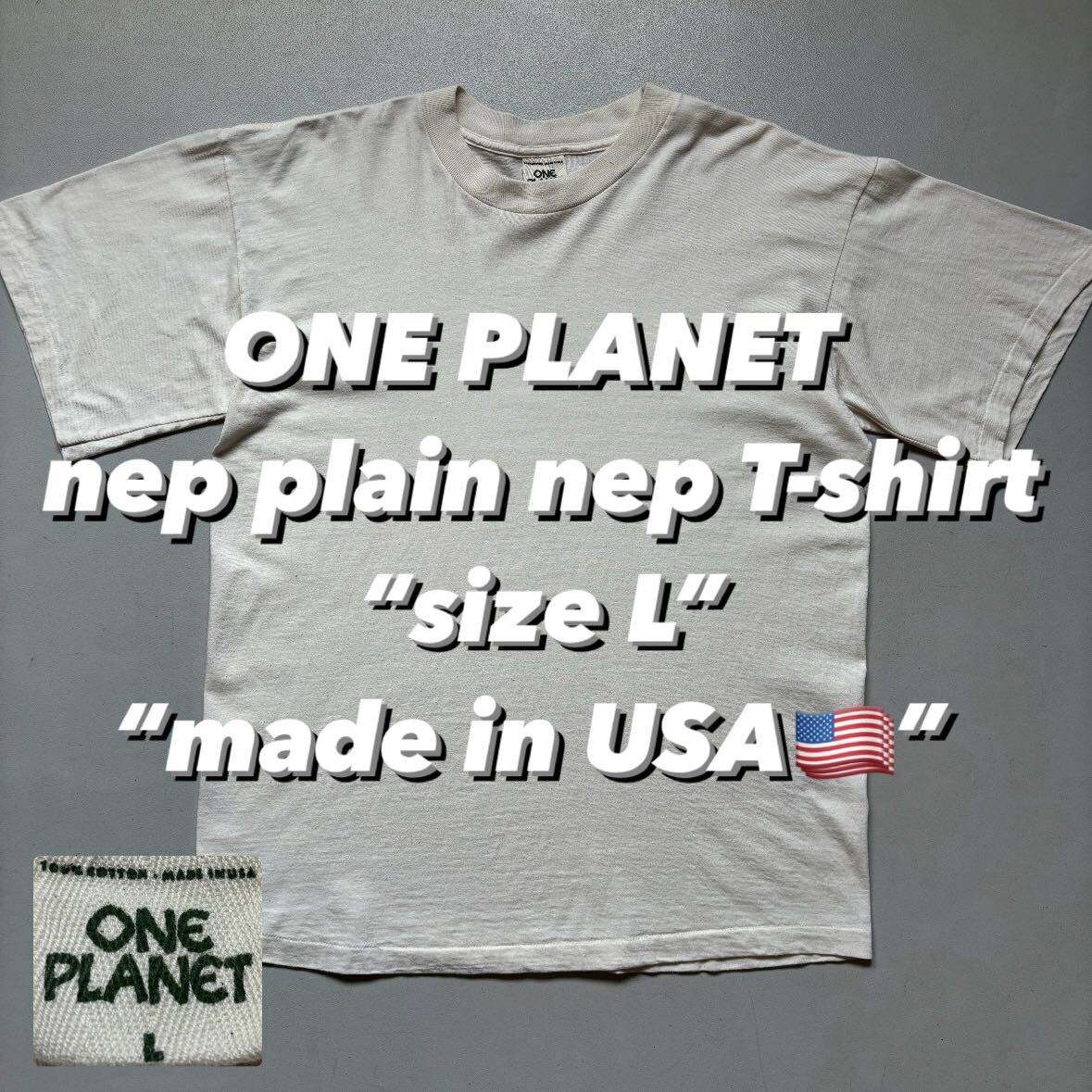 > ONE PLANET nep plain nep T-shirt “size L” “made in USA” ワンプラネット ネップ混 無地Tee Tシャツ 白 生成り アメリカ製 USA製