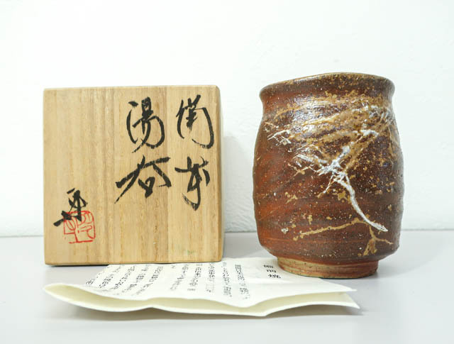 - 《京都一輝堂》【茶道具】 備前焼 多久守造 湯呑 共箱入り 作家物 落款入り R6D-17