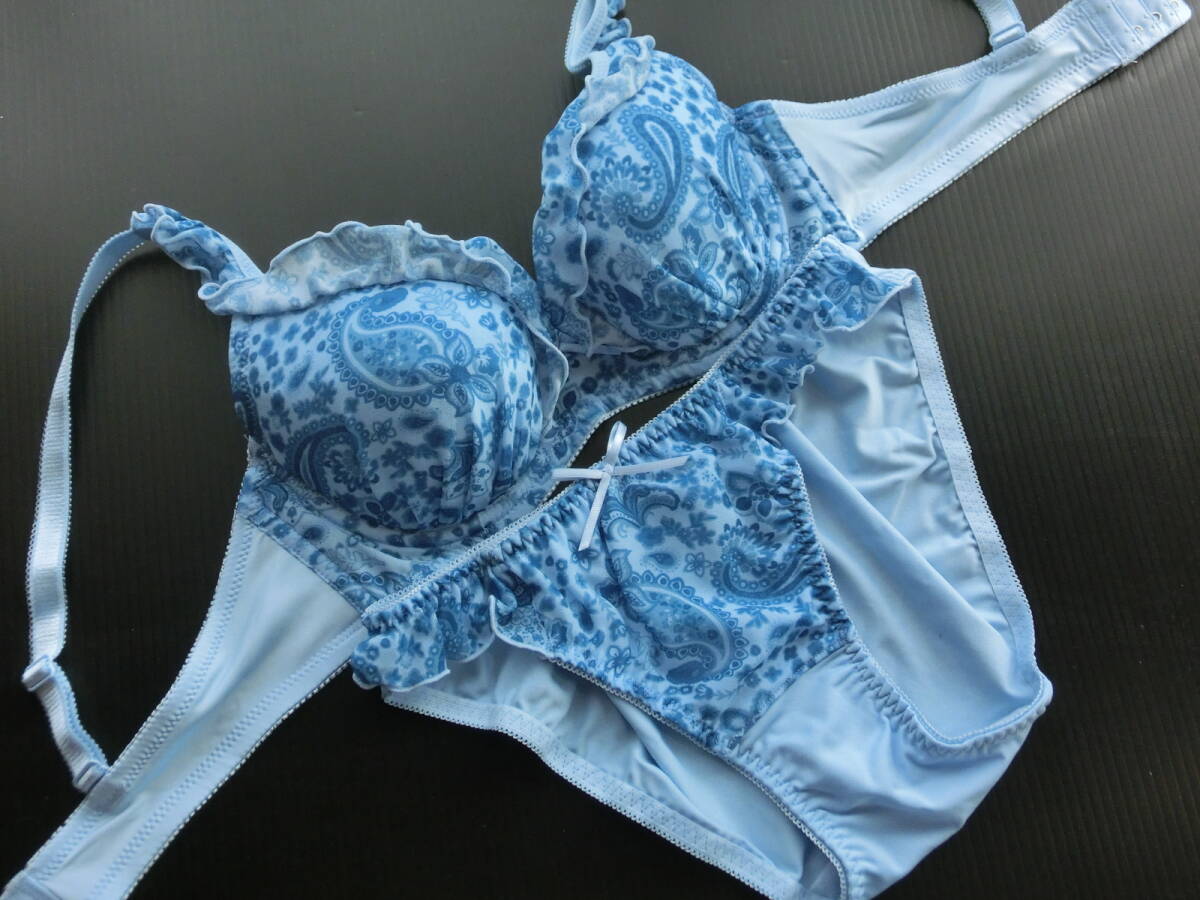- ☆【D70 M】ブルー系 ひらひら揺れるシフォンストラップ プリントブラジャー・ショーツセット《103-1》