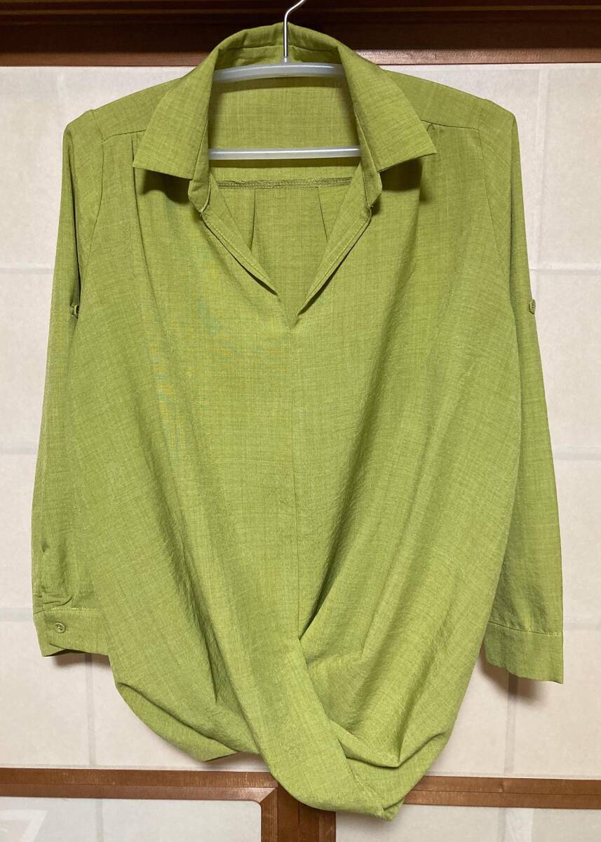 - スタイリスト御用達商品 antiqua ライムグリーンのとても綺麗なカラーの変形ブラウスになります。